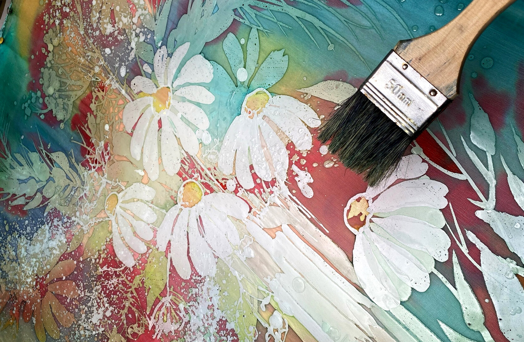 Рекомендую закупить сразу 3 активные краски под запарку и натуральный шелк, резерв, трубочку, список и сайт для покупки материалов предоставляется после оплаты. Минимальная стоимость на покупку профессиональных материалов зависит от вашего желания (от 3500 р), но Вы можете купить больше ткани.
